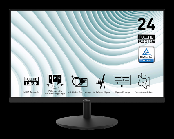 Monitor MSI PRO MP242PDE z diagonalo 60,5 cm (23,8") ponuja vrhunsko FHD IPS LED izkušnjo z ločljivostjo 1920 x 1080. Njegov odzivni čas 5 ms zagotavlja hitro in brezhibno sliko, kar je idealno za vse vrste multimedijskih aplikacij. S širokim vidnim kotom 178° omogoča odlično vidljivost iz različnih pozicij.