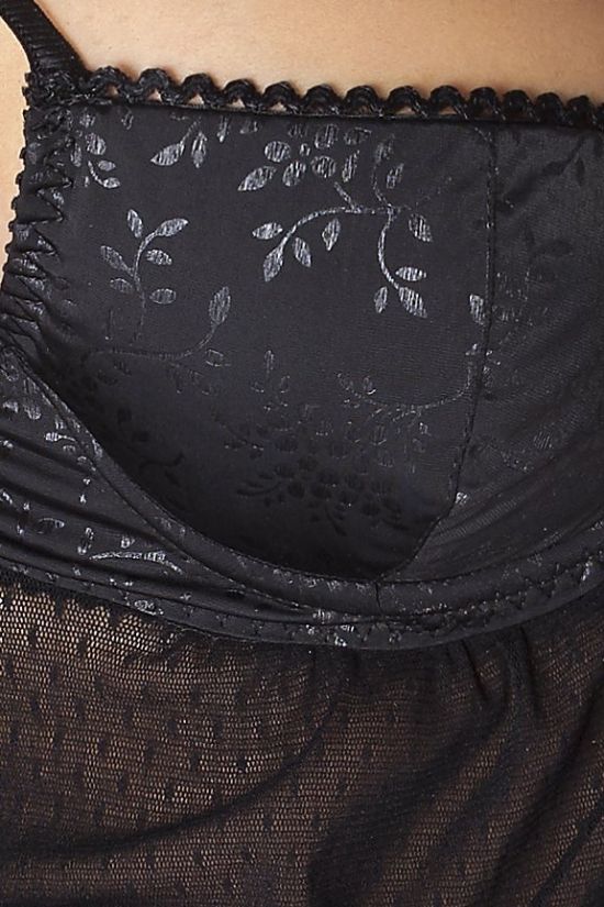 • Občutite lahkotnost in lepoto, ki jo ponuja negliže Nevis.   Negliže Nevis ima poudarjene košarice za večjo polnost oprsja, medtem, ko se na spodnjem delu spušča v prijeten in lahkoten material, ki bo nudil neverjetno udobje. Izdelan je iz črnega