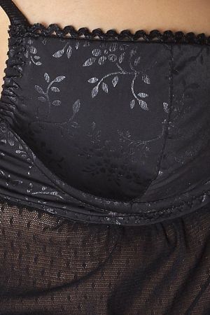 Negliže Nevis ima poudarjene košarice za večjo polnost oprsja, medtem, ko se na spodnjem delu spušča v prijeten in lahkoten material, ki bo nudil neverjetno udobje. Izdelan je iz črnega pikčastega tila, na zgornjem delu pa ga dopolnjuje elastični saten. Negliže Nevis poskrbi za svojo čarovnijo tudi na hrbtni strani, saj odpira pogled na povsem izpostavljeno zadnjico. Igriva in elegantna, takšna naj bo vaša oprava!