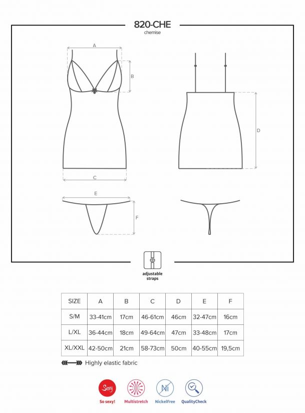 NEGLIŽE Obsessive 820Che1 Black Črna L/XL