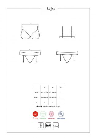 Čaka vas popoln cvetlični dizajn s prosojno tančico, ki bo prikrito odkrila nekaj golote. Komplet Letica ima udoben dizajn, ki je namenjen prijetnemu nošenju, a obenem še vedno zelo zapeljivi podobi. V komplet sta vključena nastavljiv nedrček in brazilske hlačke, ki poudarjajo žensko figuro. Če cenite lepoto a še vedno želite udobno uživate, je to komplet, ki ne sme manjkati v vaši spalnici!